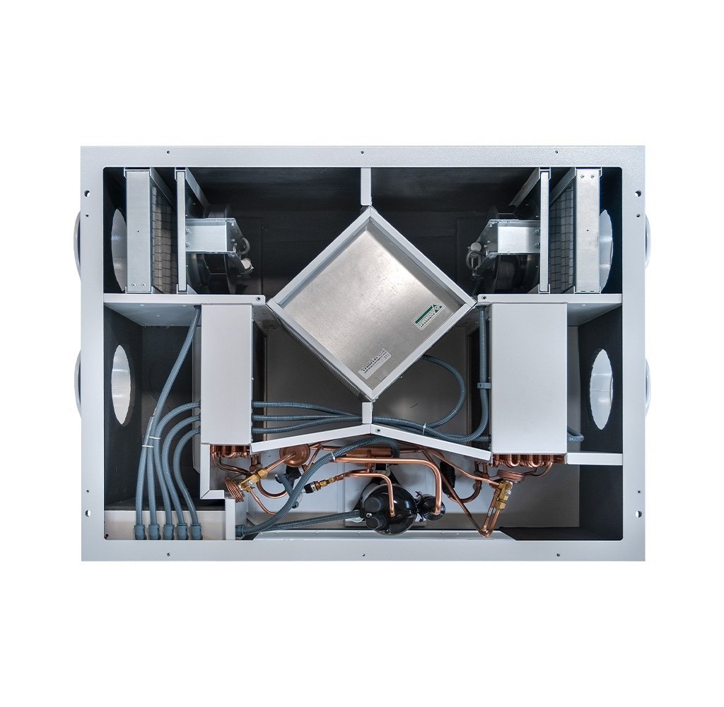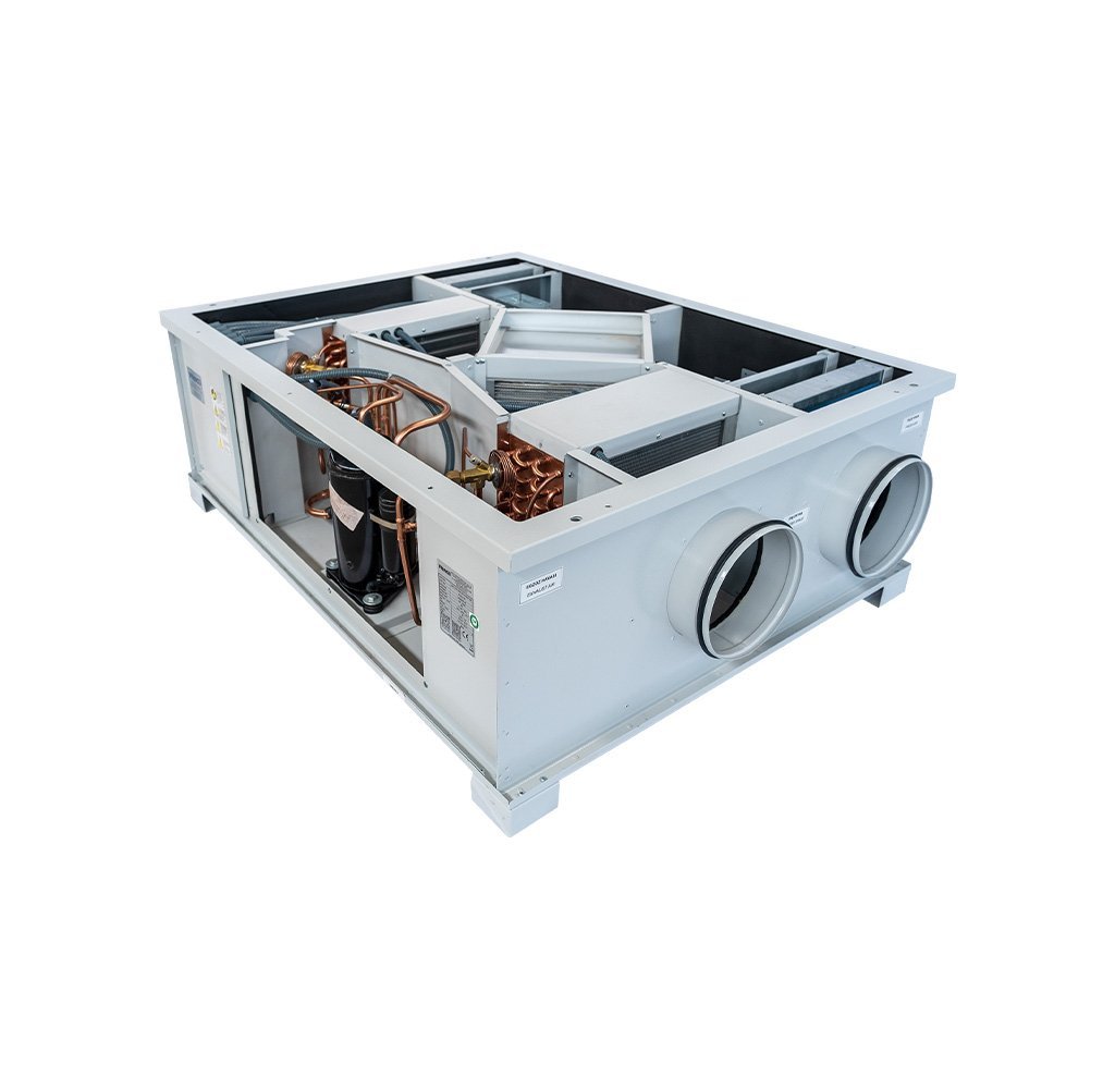VHR DX EC ısı pompalı sistemler, klasik ısı geri kazanım cihazlarına ek olarak DX batarya (direkt genleşmeli serpantin) ve ısı pompası teknolojisi ile donatılmıştır.
